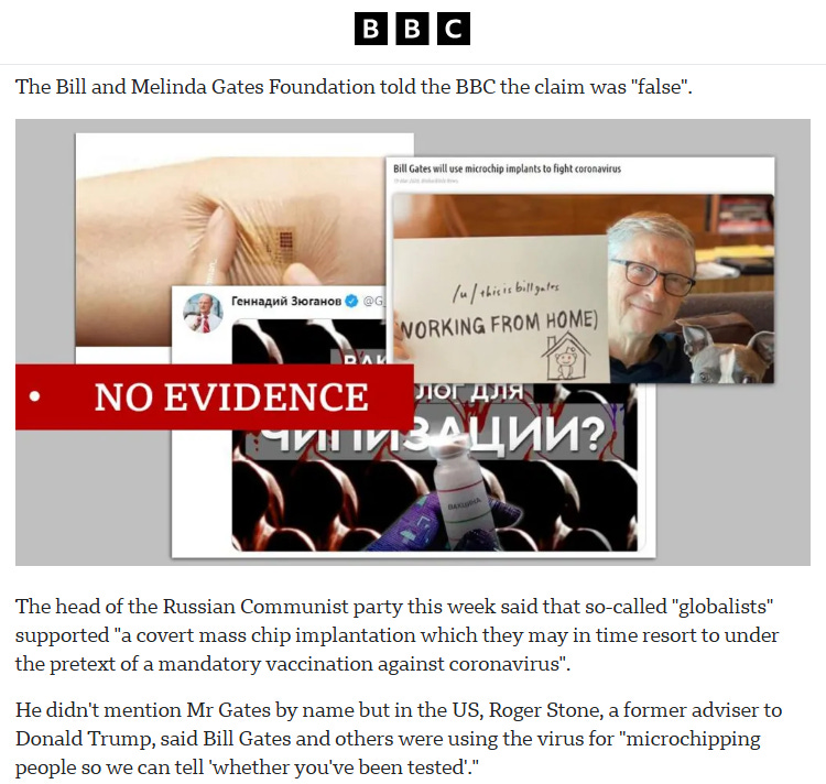 Actually the claim of a microchip being injected with the vaccines gave the mainstream cohorte a great opportunity to mock these silly conspiracy theorists.