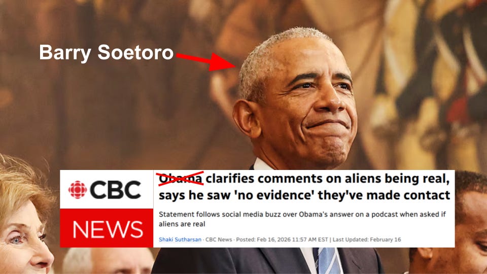 Who would have thought that Americas first ‘black’ president would - in february 2026 - be the first to officially acknowledge that “WE ARE NOT ALONE!”